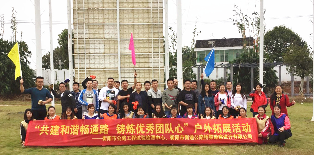 10月19日,秋高氣爽,氣候宜人,衡通公路橋梁勘察設計有限公司攜手衡陽市公路工程試驗檢測中心在珠暉區(qū)茶山坳金甲水師運動拓展基地開展主題為“共建和諧暢通路 鑄煉優(yōu)秀團隊心”的戶外拓展活動,旨在鍛煉干部員工的堅強意志,增強團隊凝聚力和整體向心力,提升集體歸屬感。