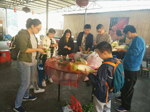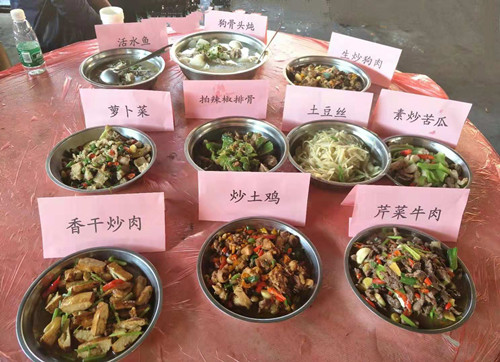 “大廚們”拿來清洗干凈的食材,等火燒得足夠旺的時(shí)候,開始了今天的重頭戲:野外做飯。3個(gè)灶臺(tái)齊炒菜,奏成一首鍋碗瓢盆交響曲。中午12點(diǎn)多,各式各樣的美食端上了餐桌,一股股誘人的香味,直往鼻子里鉆,大家拿起筷子津津有味地吃起來。享受自己的勞動(dòng)成果,感覺真好,從嘴里一直香到了心里。就餐以后大家給每個(gè)菜品進(jìn)行評(píng)選,推選出三名大廚,現(xiàn)場(chǎng)頒發(fā)了獎(jiǎng)狀。