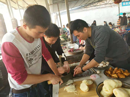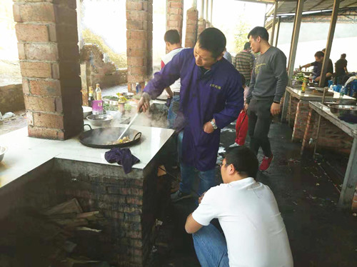 圖4:副總經(jīng)理周斌華廚藝展示 圖5:生火炒菜中