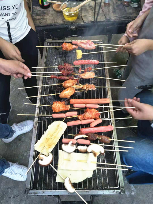 下午四點(diǎn),開始了燒烤準(zhǔn)備。又一輪的摘菜、洗菜、切菜、搗蒜伴醬……大家說說笑笑,有的扇風(fēng)燒炭、有的涂料抹粉,有的燒烤美味小吃……現(xiàn)場(chǎng)洋溢著公司上下團(tuán)結(jié)、配合默契的和諧氛圍!半y得的好天氣,同事們相聚一起,享受深秋溫暖的陽光以及自己動(dòng)手的美味佳肴,感覺特別開心!币惶(hào)“大廚”胡偉斌興致高昂的說道。